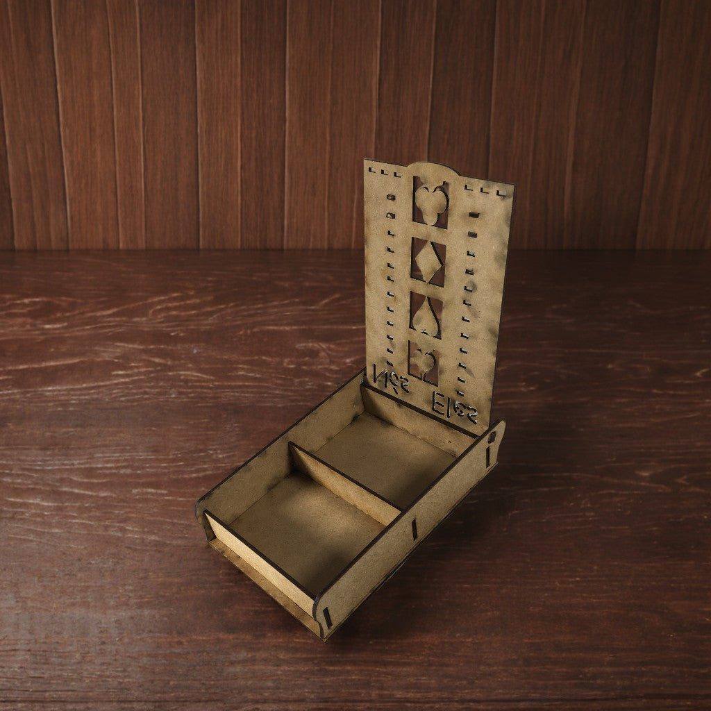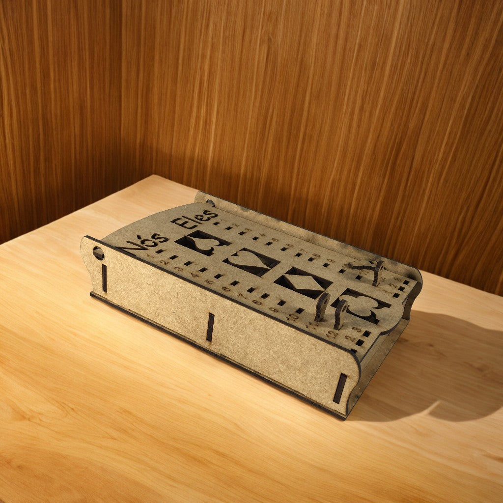 Para os verdadeiros amantes de truco, esta Caixa de Baralho é a escolha ideal. Além de manter seu baralho protegido, ela acompanha um prático sistema de pontuação, tornando suas partidas mais organizadas e divertidas. Feita em MDF 3mm cortada a laser, essa caixa é perfeita para levar a qualquer lugar, seja em viagens ou encontros com amigos. Funcionalidade e estilo em uma única peça!